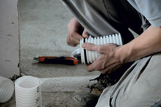 Ga je aan de slag met het Zehnder ventilatie totaalsysteem dan vallen de luchtverdeelslangen meteen op. De flexibele kunststof buizen zijn in twee diameters verkrijgbaar en hebben een andere verwerking dan de starre spiro kanalen. Er is weinig gereedschap nodig, je hoeft niet te slijpen op locatie – die slijptol waarmee je als ‘lawaaiboer’ je collega’s horendol maakte blijft nu fijn in de auto – de slangen zijn gemakkelijk met stift te markeren en iets inkorten of verlengen kun je heel eenvoudig met een scherp mes ter plaatse doen. Dat scheelt veel opmeten en onnodig heen- en weer lopen. Minder goed voor je stappenteller, maar wel fijn voor je efficiency.