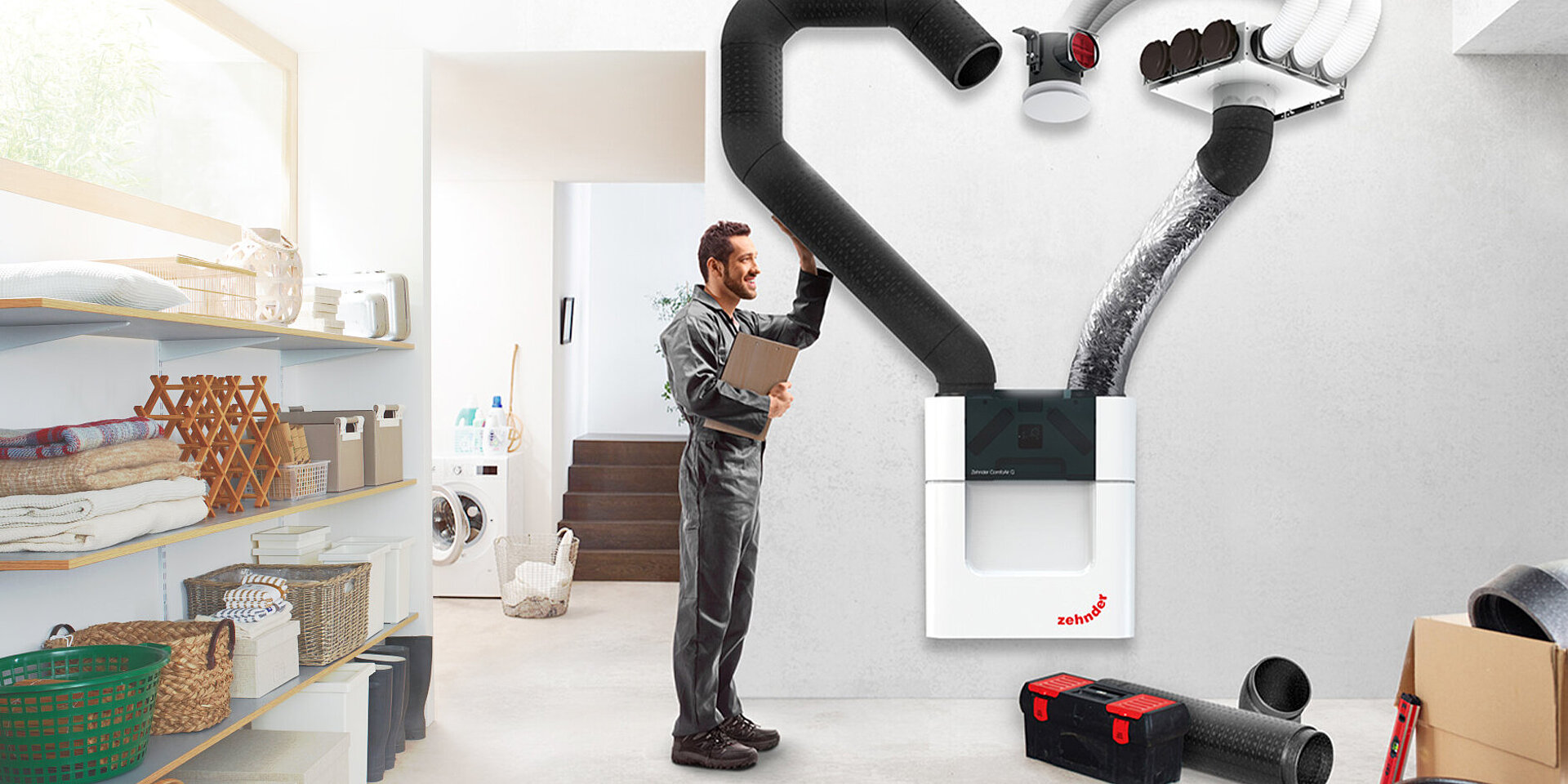 Ook in de voorbereidende fase ervaar je gemak wanneer je kiest voor een ventilatie totaalsysteem. Maik Bennink, Productmanager bij Zehnder geeft enthousiast aan: “Ik help de installateur graag om zijn opdracht van begin tot einde zo goed mogelijk uit te voeren. Zodra de specificaties van de woning bekend zijn maken we een passende ventilatieberekening en een compleet systeemplan. Daar staat precies op ingetekend wat je waar nodig hebt en hoe de kanalen lopen. Super handig. Wat ook fijn is, is het bijbehorende ‘boodschappenlijstje’. Met een aantal groothandels zijn afspraken gemaakt dat zij alle benodigde materialen voor het totale Zehnder ventilatiesysteem op voorraad hebben. Zo grijp je als installateur dus nooit mis.”